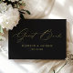 Elegant wedding guestbook featuring "Guest Book" displayed in a modern foil calligraphy script with a black background. Personalize the front of the photo wedding guest book with your names and wedding date. Add your married name and wedding date to the spine of the guest book. The back of the black and gold foil guest book displays your horizontal engagement photo.