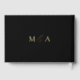 Elegant wedding guestbook featuring "Guest Book" displayed in a modern foil calligraphy script with a black background. Personalize the front of the black and gold foil wedding guest book with your names and wedding date. The back of the guest book displays your monogram initials. Add your married name and wedding date to the spine of the guest book.