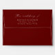 Simple, modern wedding envelopes featuring "the wedding of" displayed in an elegant white calligraphy script on a burgundy background. Personalize the envelope flap with your names and return address.