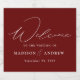 The modern wedding sparkling wine labels featuring "Welcome" displayed in an elegant white calligraphy script on a burgundy background. Personalize the burgundy wedding sparkling wine labels with your names and wedding date. The simple wedding sparkling wine labels are perfect to use for wedding receptions, rehearsal dinners, and engagement parties.
