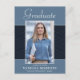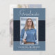 Beautiful 2 photo, graduation announcement postcards. Featuring modern text with elegant script. The graduates photo is thinly edged in a white border and decorative wavy trim. The design is complimented with a background in shades of dusty blue. The back of the card offers a personalized announcement text space for that special graduate and a second grad photo under a soft misty layer creating a chic backdrop. The perfect card to share this special occasion. To see more items like this, visit my store here at "www.Zazzle.com/LakeViewCardCo". Thanks