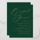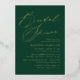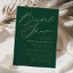 Simple bridal shower invitations featuring "Bridal Shower" displayed in a gold foil calligraphy script with a green background. Personalize the green and gold foil bridal shower invitations with the bride-to-be's name and shower details below. The modern bridal shower invite reverses to display a solid green background.