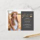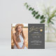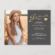 This double sided 2 photo stylish graduation announcement or thank you postcard, features modern text fused with elegant calligraphy script in gold colour and white on grey. Photos are one on the front and one on the back. To see more items like this, visit my store here at "www.Zazzle.com/LakeViewCardCo". Thanks