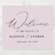 The modern wedding sparkling wine labels featuring "Welcome" displayed in an elegant black calligraphy script on a lavender-purple background. Personalize the lavender wedding sparkling wine labels with your names and wedding date. The simple wedding sparkling wine labels are perfect to use for wedding receptions, rehearsal dinners, and engagement parties.