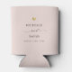 Modern wedding party favour can cooler with your custom names in elegant swirly script calligraphy, the couple's names and the date of your celebration. This is the minimalist blush pink version with a golden heart detail. Great also for bridal showers, engagement or bachelorette parties.