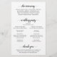 Minimalist photo budget wedding program flyer with a simple design featuring "welcome to our wedding" along with your names, date and location over your favourite picture.  The backside has your order of ceremony, wedding party and thank you message in black over a white background.  Accent words are in an elegant handwritten script with swashes for a modern and chic twist.  These cheap wedding programs are printed on sheets of paper for a budget friendly option.