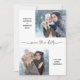 This modern save the date card features 3 photos accented with elegant script text. Two photo appear on the front and a third fills the back with text overlay for additional information. Personalize with the names of the couple and their upcoming wedding date and location.