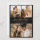 Elegant modern black and gold script 3 photo collage wedding save the date announcement card. Chic minimalist design template feature three (3) couple photo collage and elegant cursive hand lettering typography script „Save the Date” text in gold on black background colour. If you need help or matching items, please contact me.