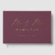 Elegant wedding guestbook featuring "Mr. and Mrs." displayed in a modern gold foil calligraphy script on a purple background. Personalize the front of the simple wedding guest book with your last name and wedding date. Add your married name and wedding date to the spine of the photo guest book. The back of the purple and gold foil guest book displays your horizontal engagement photo.