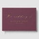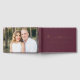 Elegant wedding guestbook featuring "the wedding of" displayed in a modern gold foil calligraphy script with a purple background. Personalize the front of the simple wedding guest book with your names and wedding date. Add your married name and wedding date to the spine of the photo guest book. The back of the purple and gold foil guest book displays your horizontal engagement photo.