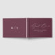 Elegant wedding guestbook featuring "Guest Book" displayed in a modern white calligraphy script on a purple background. Personalize the front of the simple wedding guest book with your names and wedding date. The back of the purple guest book displays your monogram initials. Add your married name and wedding date to the spine of the guest book.