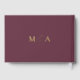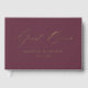 Elegant wedding guestbook featuring "Guest Book" displayed in a modern foil calligraphy script with a purple background. Personalize the front of the purple and gold foil wedding guest book with your names and wedding date. The back of the guest book displays your monogram initials. Add your married name and wedding date to the spine of the guest book.