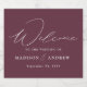 The modern wedding sparkling wine labels featuring "Welcome" displayed in an elegant white calligraphy script on a wine-purple background. Personalize the purple wedding sparkling wine labels with your names and wedding date. The simple wedding sparkling wine labels are perfect to use for wedding receptions, rehearsal dinners, and engagement parties.