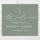 The modern wedding sparkling wine labels featuring "Welcome" displayed in an elegant white calligraphy script on a sage green background. Personalize the sage green wedding sparkling wine labels with your names and wedding date. The simple wedding sparkling wine labels are perfect to use for wedding receptions, rehearsal dinners, and engagement parties.