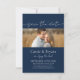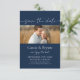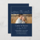 Modern Elegant Script Save the Date Monogram Invitation. This one photo invite is the perfect combination of simple elegance and minimalist design features with one photo to commemorate your special day. Monogram on the back and minimal navy blue and white design for your wedding, anniversary or special occasion.