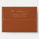 Simple, modern wedding envelopes featuring "the wedding of" displayed in an elegant white calligraphy script on a terracotta background. Personalize the envelope flap with your names and return address.