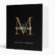 Modern Elegant Simple Black Gold Script Monogram 3 ring binder