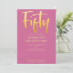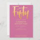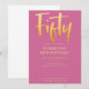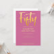 Introduce new modern, elegant 50TH birthday party invitation, pink background with gold colour handwritten typography text "fifty". Customize this template card by adding your own party information.