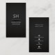 Modern Elegant Simple Plain Black Sleek Professional Business Cards. Including a simple monogram logo you can edit. Black trendy metallic background with bright stylized icons.