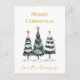 Spread holiday cheer with this elegant, watercolor Christmas postcard. The design features three unique snow-covered Christmas trees, each topped with a delicate golden star. This charming winter scene is perfect for sending warm holiday greetings to family and friends. The elegant "Merry Christmas" message paired with a personalized, handwritten signature adds a sophisticated touch. This postcard is the perfect way to share your holiday joy.