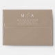 Elegant monogram wedding envelopes featuring your monogram displayed in white lettering with a calligraphy script ampersand in the middle of the two initials on a taupe background. Personalize the envelope flap with your names and return address.