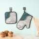 Modern Elegant Teal Grey Marble Oven Mitt & Pot Holder Set