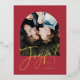 Modern elegant trendy typography red 1 photo foil holiday postcard
