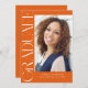 Orange Modern Elegant Vertical Two Photo Graduation Invitation features a fun and modern type, along with your graduation photo. Add your party or open house details to the back.