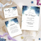Delight your guests with this beautiful celestial wedding invitation with delicate watercolor stains and dainty stars showcasing your wedding details in a beautiful blend of blue, navy, turquoise, teal, purple, magenta, fuchsia, and gold hues. Modern hand written calligraphy details. Modern and simple wording style. Elegant back with attractive celestial watercolor stains and couples initials. Part of our "Mystic Garden Celestial" collection with a variety of coordinating products available.