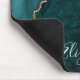 Modern Elegant Fashionable Watercolor Teal and Gold Marble Agate Geode Mouse Pad personalized with your name in trendy script.