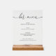 Modern, elegant wedding acrylic sign for your "bar menu" features a minimalist black and white design. Personalize with your wedding drink menu with the easy to edit template featuring an elegant script font and classy serif font. The acrylic sign can be ordered with or without a wooden stand. Check out matching items in the "Modern Elegant" collection.