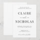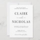 Modern, elegant wedding invitation features a minimalist black and white design. Personalize with your wedding details with the easy to edit template featuring an elegant script font and classy serif font. Choose between "reception to follow" or "dinner and dancing to follow" at the bottom of the invitation.