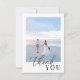 Modern, elegant flat thank you card features a minimalist black and white design and bold "thank you". Personalize with your wedding details with the easy to edit template featuring an elegant script font and classy serif font. Replace the photo on the front with one from your wedding. Add your own message or delete the text so you can handwrite your message on the back. Check out matching items in the “Modern Elegant” collection.
