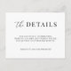 Modern, elegant "the details" enclosure card features a horizontal, minimalist black and white design. Personalize with your wedding website URL with the easy to edit template featuring an elegant script font and classy serif font.