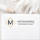 Elegant return address labels in white with black letters and faux square / diamond gold frame. Letter initial monogram. Add these to your envelopes to add some touch of class. Perfect for any occasion; wedding, birthday, announcement, graduation. Editable templates - add your own information. Found in "ADDRESS RETURN LABELS' collection