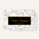 Chic, glam and modern professional white-gold marble with black-gold framed background for your text. Realistic looking gold name due to shadow overlay. Back with gold framed precious monogram calligraphy script.