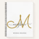 Modern, trendy girly white and gold custom personalized monogrammed spiral notebook. This simple elegant design features a cursive hand lettering first name with swashes in grey and a huge hand-written monogram script in gold colour on white background. This feminine, pretty notebook is a perfect gift idea for business, professional, school, birthday party, wedding and any party or occasion for someone that like girly and modern styles. If you need help or matching item please contact to designer.