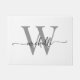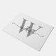 Girly Modern Elegant Stylish White and Grey Monogram Initial Name Script Custom Personalized Doormat. This design featuring a first name in a pretty hand lettered swash tail font calligraphy (or typography) with monogram initial in grey and black on white. Great stylish feminine housewarming gift, also for birthday, wedding, bridal shower, anniversary, newlyweds, bachelorette party and It’s for the girl wholikes clean minimalist things.