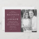 Modern photo wedding invitation featuring your wedding details on the left of the design in white lettering with calligraphy script accents on a wine-purple background. Personalize the front of the invite by adding your names, wedding details, and vertical engagement photo. The back of the invite provides space for additional text and photos. Designed to coordinate with our Modern Elegance wedding collection.