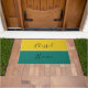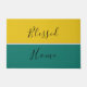 Special modern design doormat with elegant script "Blessed Home". In modern colours of golden yellow and green. Perfect outdoor doormat for any style of home decor.
