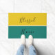 Modern Elegant Yellow Green Script Blessed Home Doormat