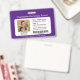 A modern elementary student id badge. The design has a bold purple background border. It shows a well sized student id photo. Information can be personalized and includes the student's name, ID number, grade, teachers name and room for additional information. Also the school address and school year. Would also work for teachers. All the design elements can be personalized in colour to suit your school. This colour of this badge can be customized to match the schools colours. If you need any help with this template please message me and I will get right back to you and gladly assist you. Thanks! Sandy