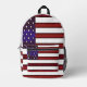 This design of the American flag presents some unique traits. The colours are vivid, with a striking deep blue for the stars' background and a rich red for the stripes. The colours are vivid, with a striking deep blue for the stars' background and a rich red for the stripes. The stars and stripes appear to be embossed or raised, creating a 3D effect. The colours have a gradient effect, adding depth and dimension to the design. The overall style gives a modern and stylized interpretation of the traditional American flag.