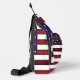 This design of the American flag presents some unique traits. The colours are vivid, with a striking deep blue for the stars' background and a rich red for the stripes. The colours are vivid, with a striking deep blue for the stars' background and a rich red for the stripes. The stars and stripes appear to be embossed or raised, creating a 3D effect. The colours have a gradient effect, adding depth and dimension to the design. The overall style gives a modern and stylized interpretation of the traditional American flag.