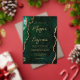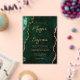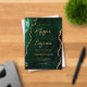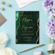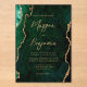 This elegant acrylic wedding invitation features a background image of emerald green watercolor agate trimmed with faux gold glitter. The customizable text combines gold-coloured modern handwriting, copperplate and italic fonts.