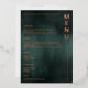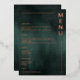 Elevate Your Wedding Reception: Modern Emerald Green Black Elegant Wedding Foil Menus. Transform your dining experience with our meticulously designed menus, seamlessly blending emerald green and black tones enriched by elegant foil accents. Set the tone for a sophisticated wedding reception with these menus that harmoniously balance contemporary elegance and timeless charm. Customize them to match your unique theme. Create a memorable ambiance that resonates with your distinctive style. Shop now and delight your guests with an unforgettable dining presentation.