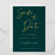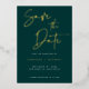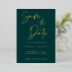 Modern Deep Emerald Green Gold Foil Calligraphy Script Wedding Save the Date Card with gold foil. Change foil colour to another colour if you like. Background colour can also be changed.