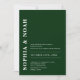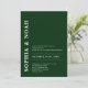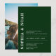 This invitation features a chic emerald green background with a minimalistic design. The names of the couple are highlighted in bold, elegant typography, adding a touch of modern elegance to the invitation. Add your photo on the back.
