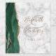 This modern wedding design features an emerald green watercolor agate and gold faux glitter border on the left edge. Personalize it with the couple's names in elegant gold-coloured handwriting script over a large ampersand on a grey and white marble background, with the wedding date below.
