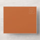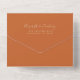 The left-hand edge of this elegant modern all-in-one wedding invitation and RSVP features an emerald green watercolor agate border trimmed with faux gold glitter. The customizable text combines gold-coloured whimsical handwriting script, copperplate and italic fonts on a burnt orange or rust background.